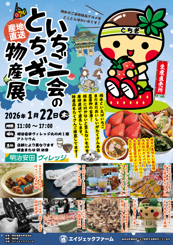 野菜・果物・特産品を都内で産直販売する栃木物産展の運営(三次産業)を行い、六次産業化を実践している農業生産法人です。